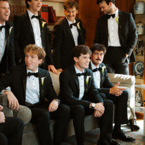 Wedding Dress: @anthropologieweddings | Tuxedos: @theblacktux