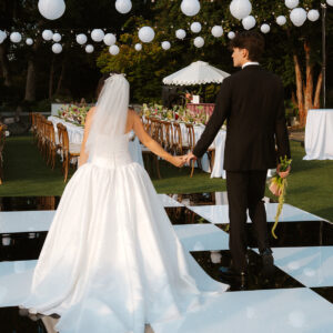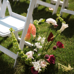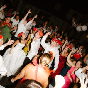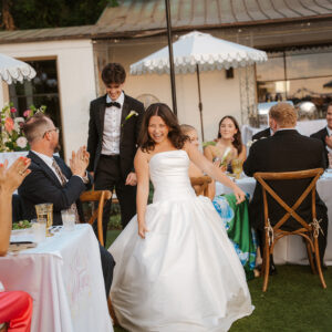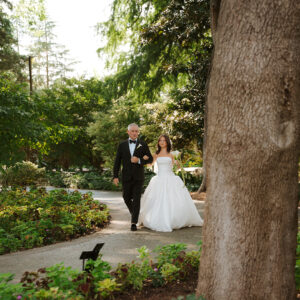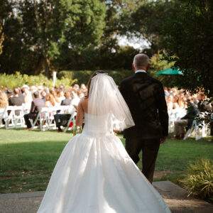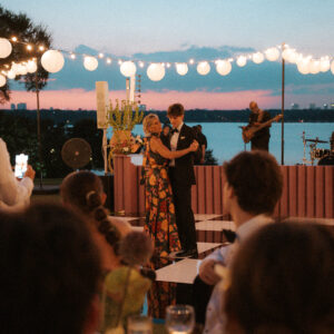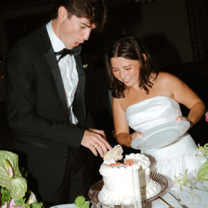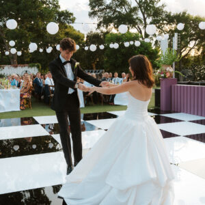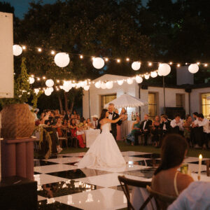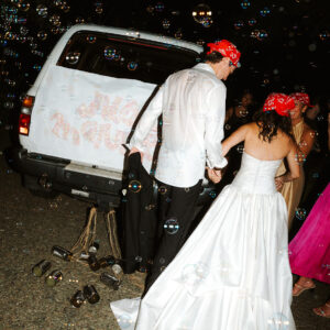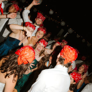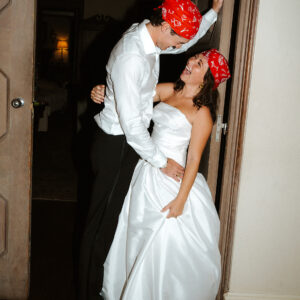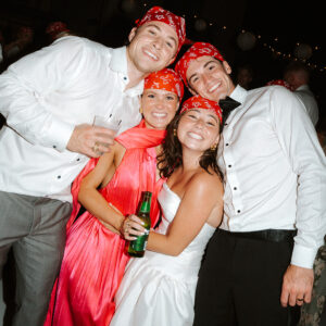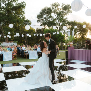 Intensity Bands set the tone for the evening, serenading guests and providing the soundtrack for first dances. The dance floor featured a custom checkered pattern, installed by Centerstage Floors. Guests enjoyed the lively reception as they were provided a catered meal from Vestals Catering. Our couple cut the cake by Inb Dallas as the sun started the set. From there, the dance floor filled up where guests donned red bandanas. The bride and groom were sent off with love as they left their Dallas Arboretum wedding in style. This was such a fun, unique wedding to be a part of!