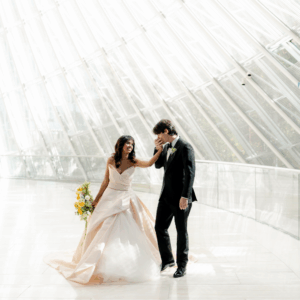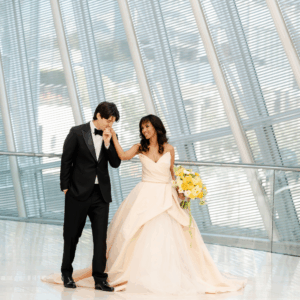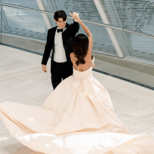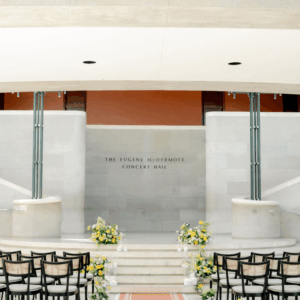 Planning: Shanese Stephens of KC Cloud | Photography: Kate Pease | Venue: McDermott Concert Hall | Linens: BBJ La Tavola | Videographer: Shawn Yang | Content Creator: Content by Steph | Aisle: Imperial Floors | Hair and Makeup: Styles by Vero | Invitations: Scribbles and Swirls | Table Top: Posh Couture Rentals | Dress: Neiman Marcus | Models: Rachel and Zach | Cake: Fancy Cakes by Lauren